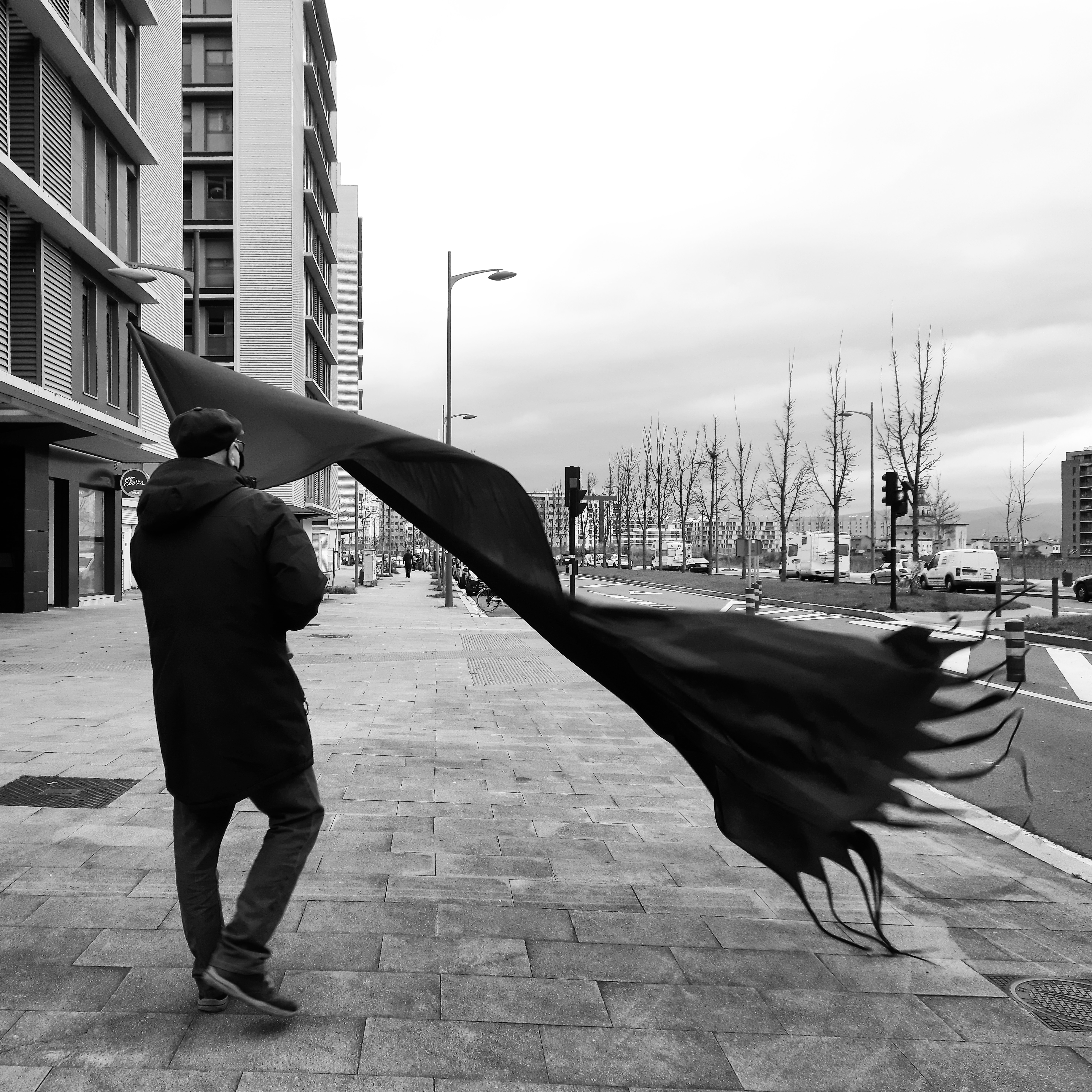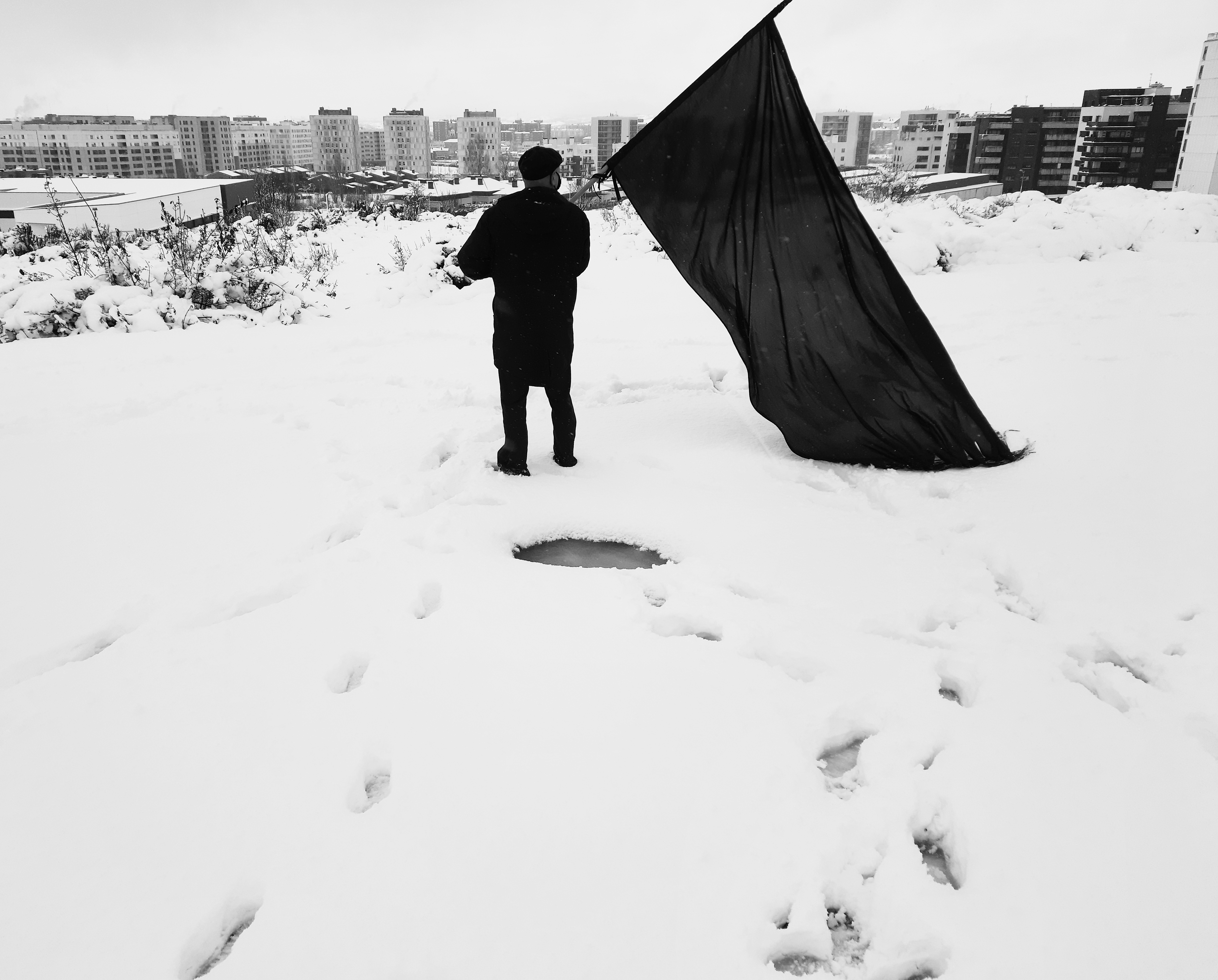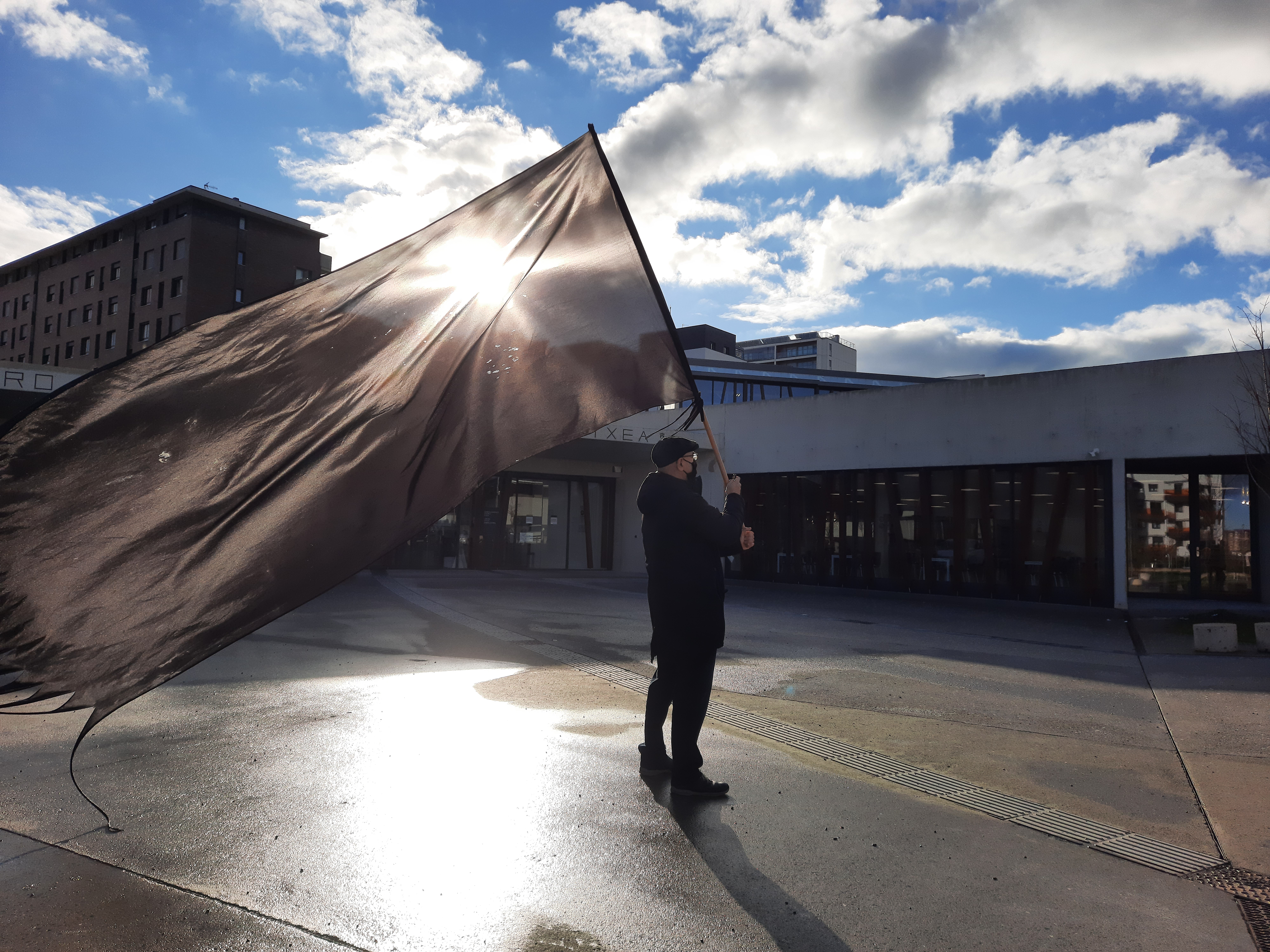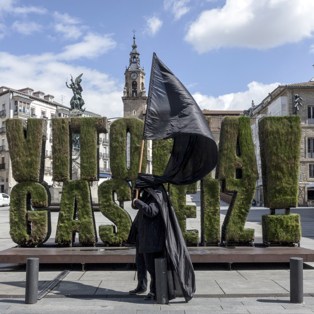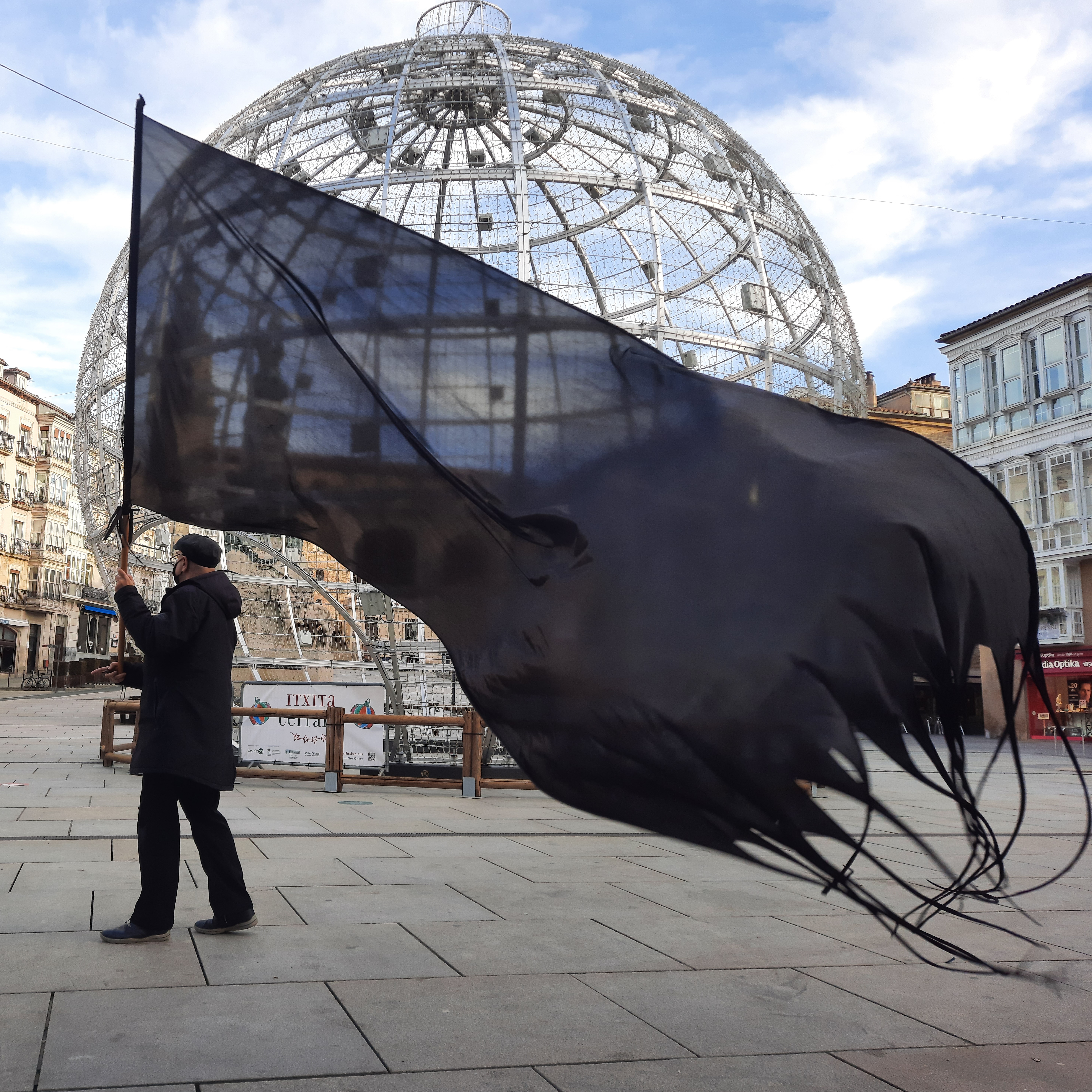 Bandera negra sobre green capital. Fotografía de Jorge Salvador. Bandera negra sobre ciudad blanca. Fotografía de Jorge Salvador.Bandera negra sobre ciudad blanca. Olárizu.Bandera negra sobre centro cívico blanco. Zabalgana.Bandera negra sobre blanca Navidad. Virgen blanca.Bandera negra sobre ayuntamiento blanco.Bandera negra sobre ciudad blanca. Invernal.Bandera negra sobre ciudad blanca. Instituto.Bandera beltza hiri zuriaren gainean.