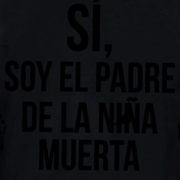 Camiseta de algodón negra, de manga corta. Con letras negras de vinilo termoadheridas al pecho. De difícil pero no imposible lectura. La he llevado puesta en alguna de mis concentraciones. En muda respuesta a una pregunta recurrente.