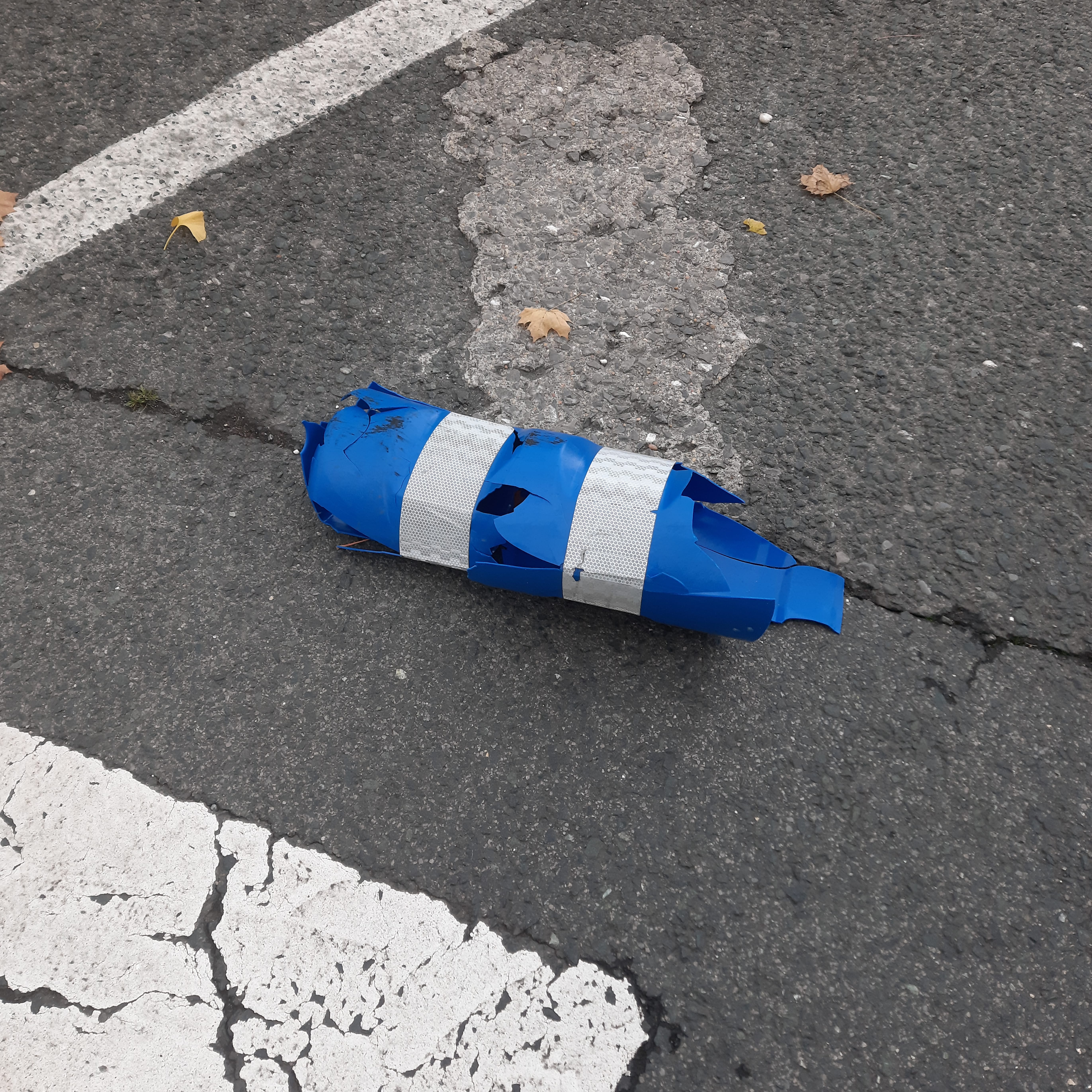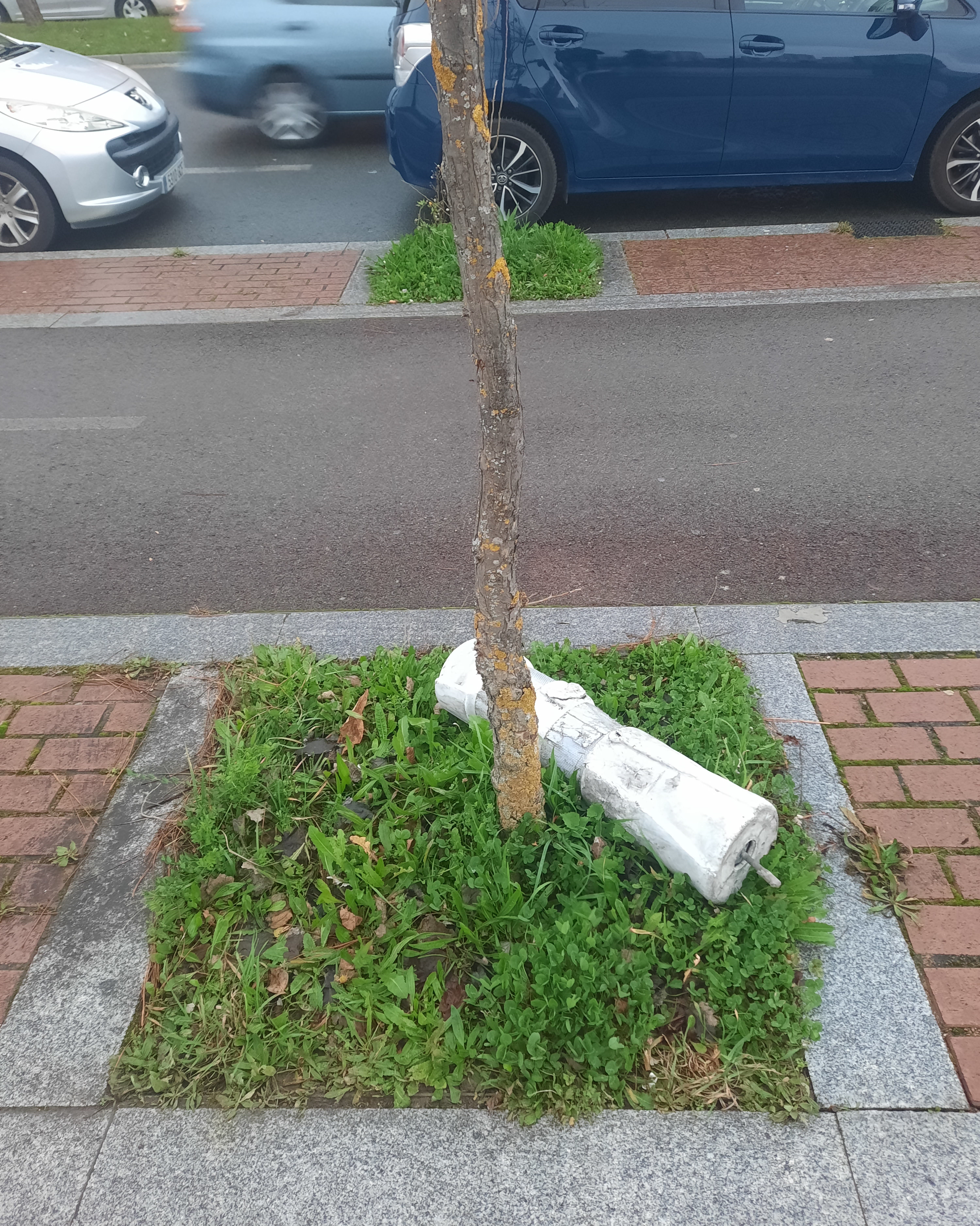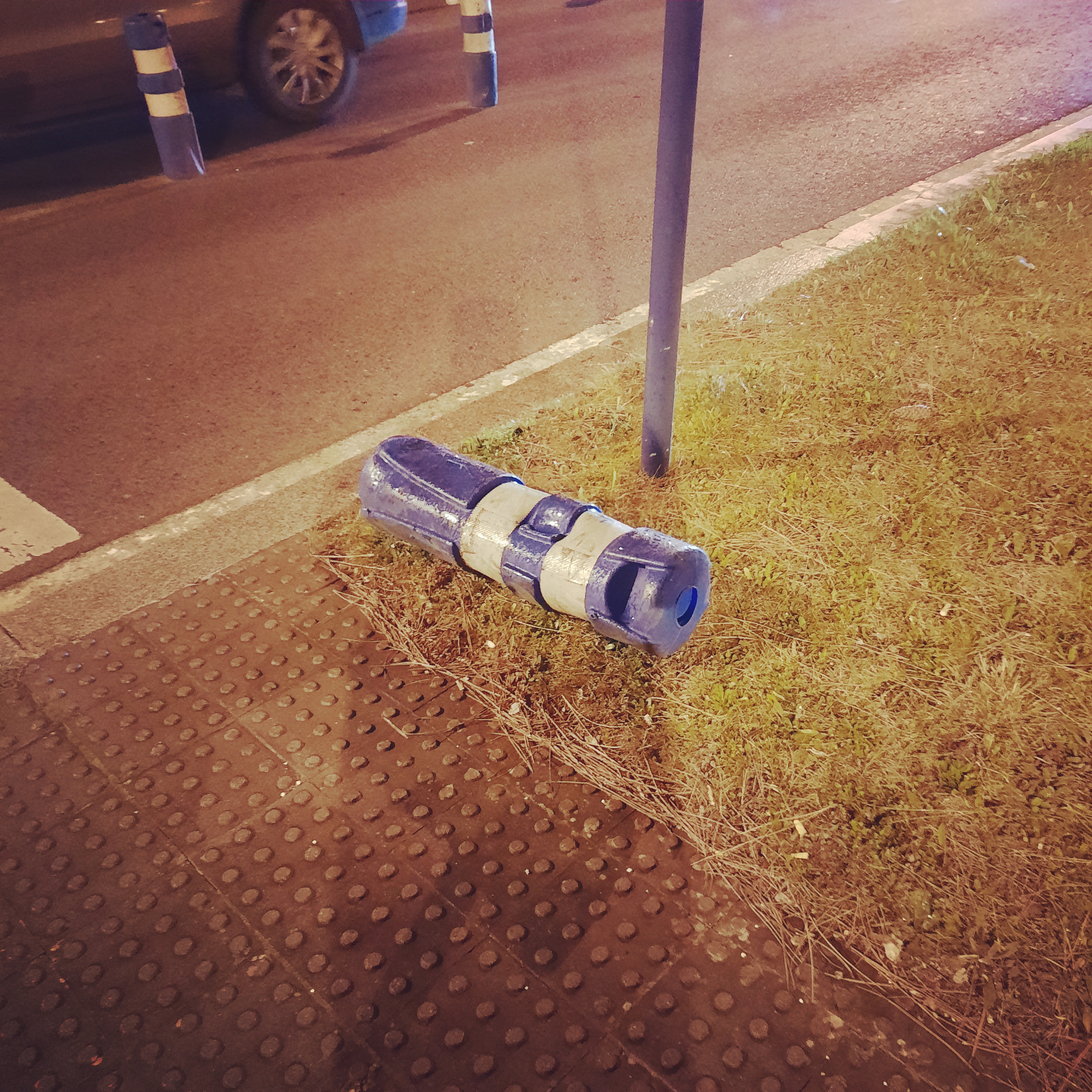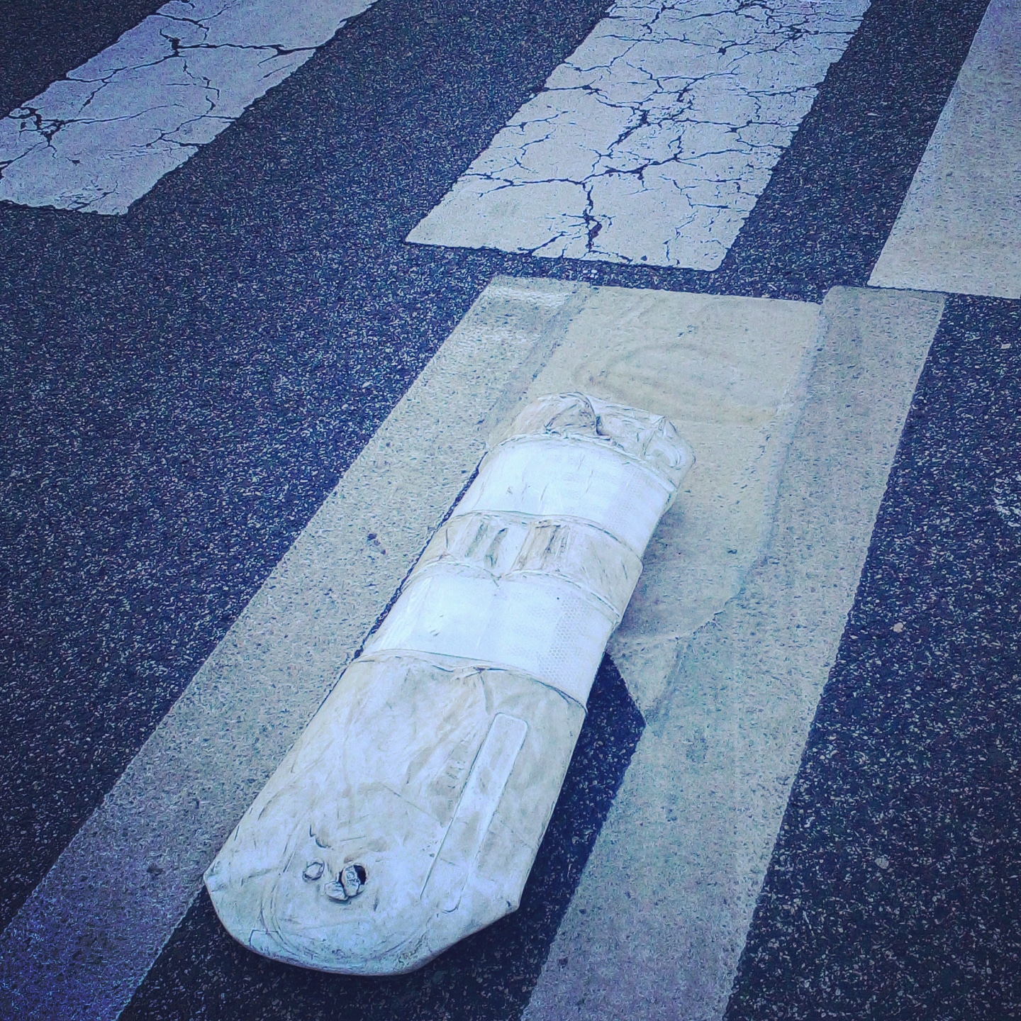 Baliza derribada junto al paso de peatones en el que mataron a mi hija. Fotografía realizada tres años después.Banal.