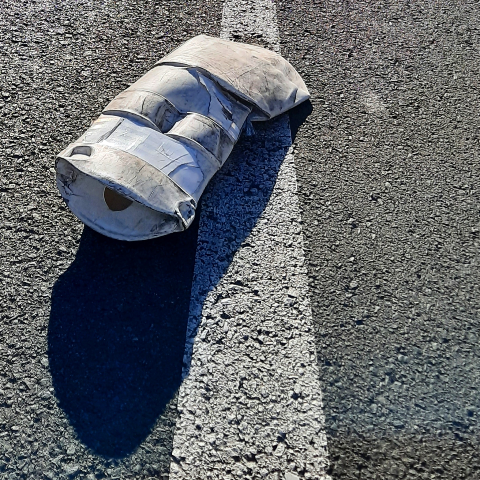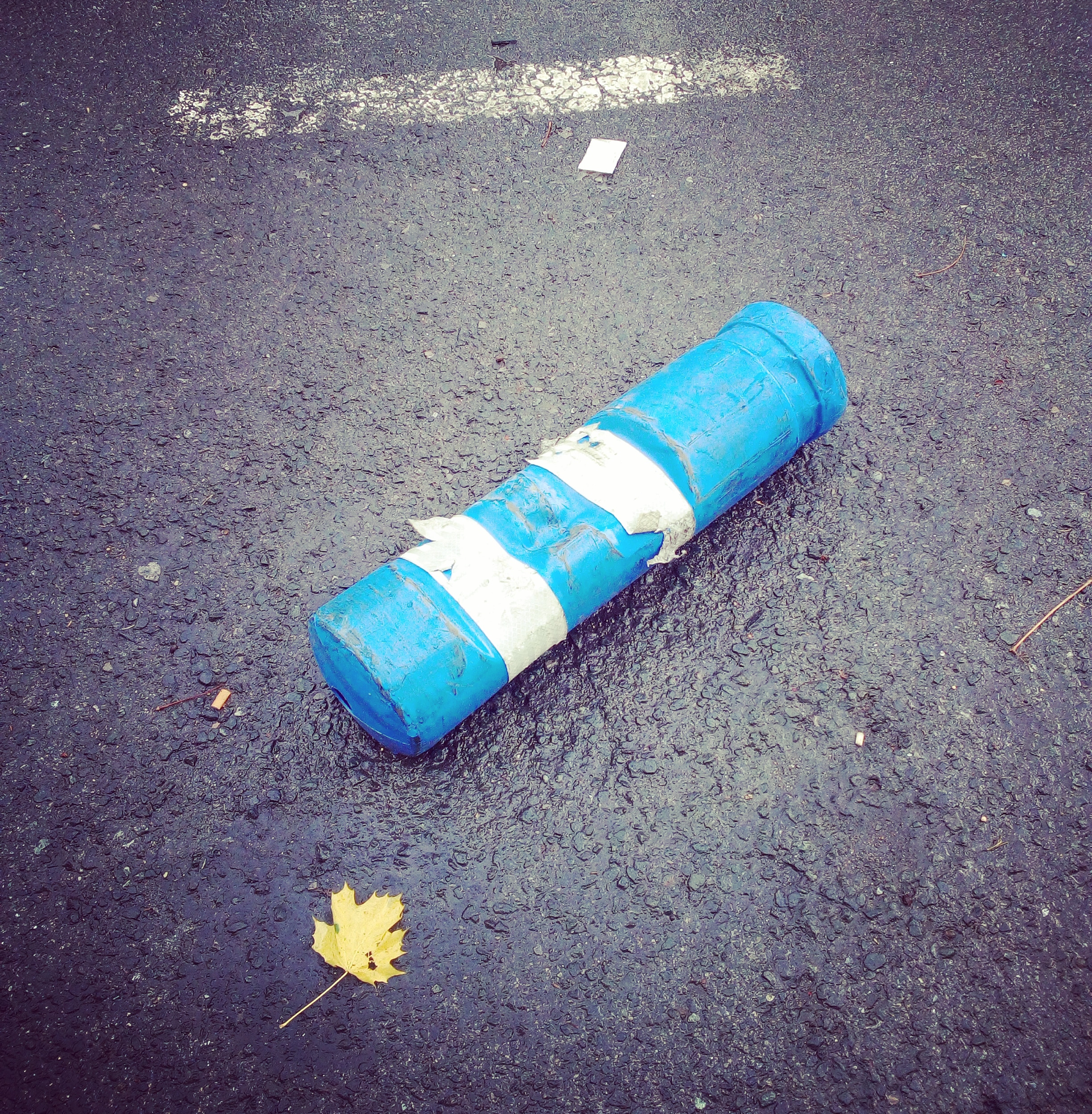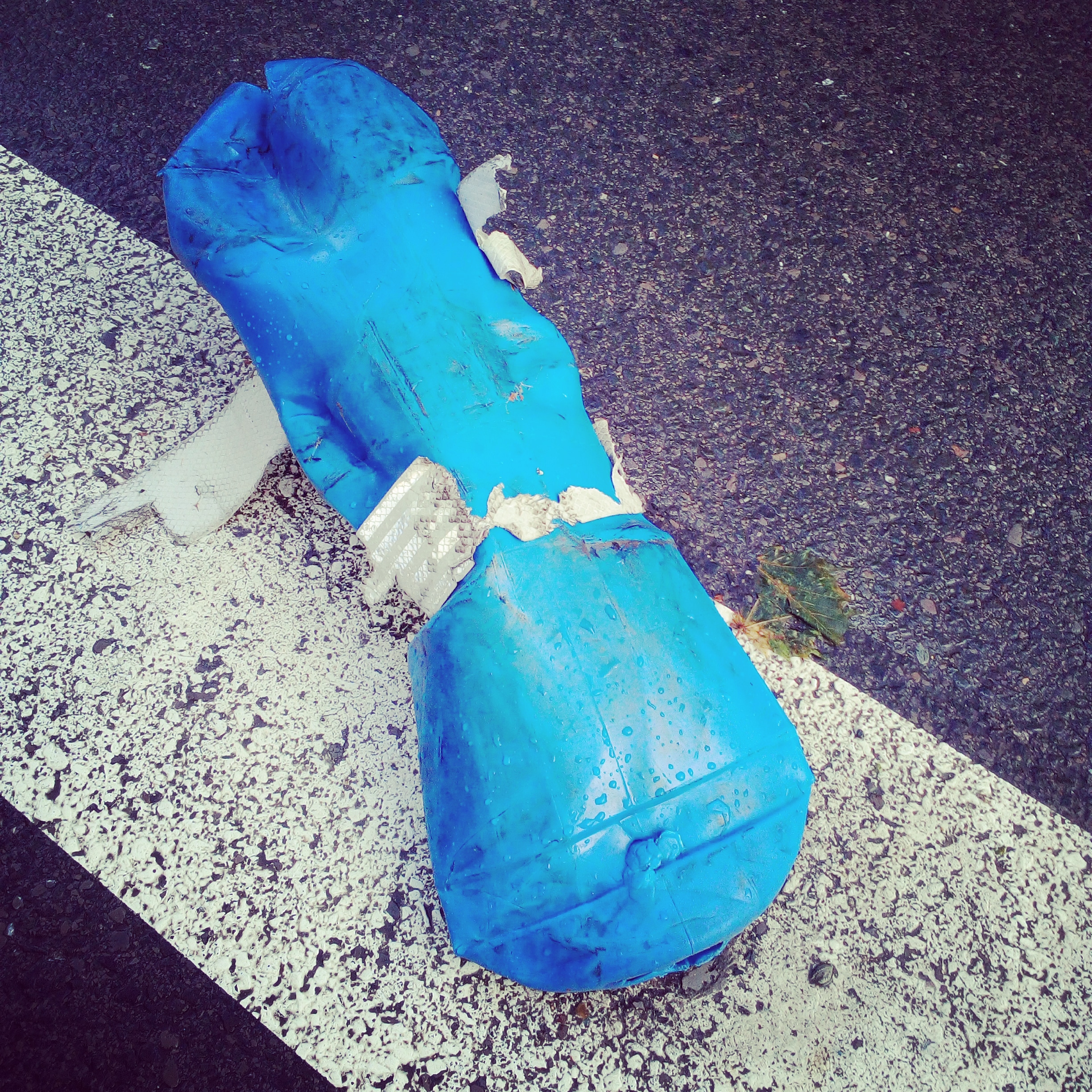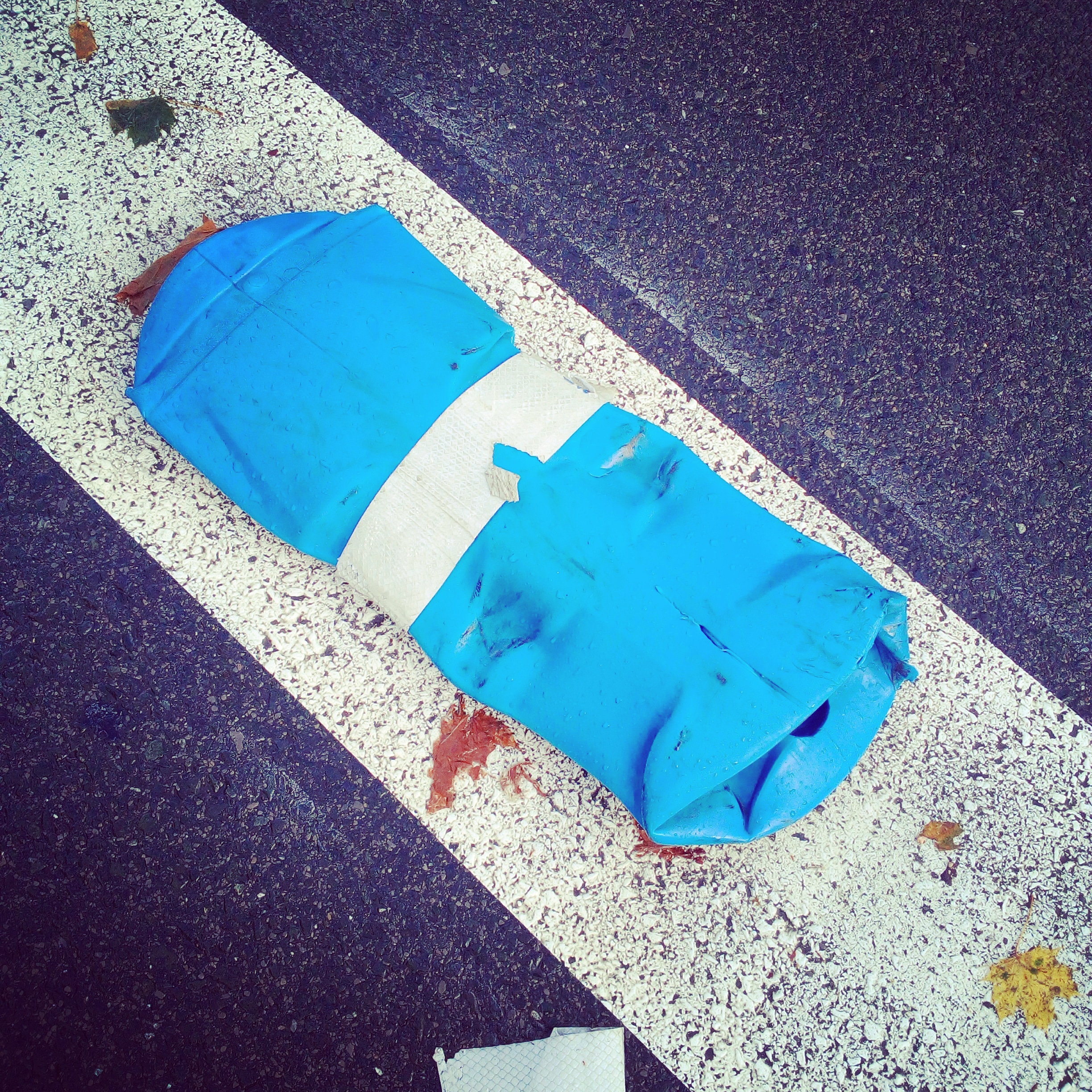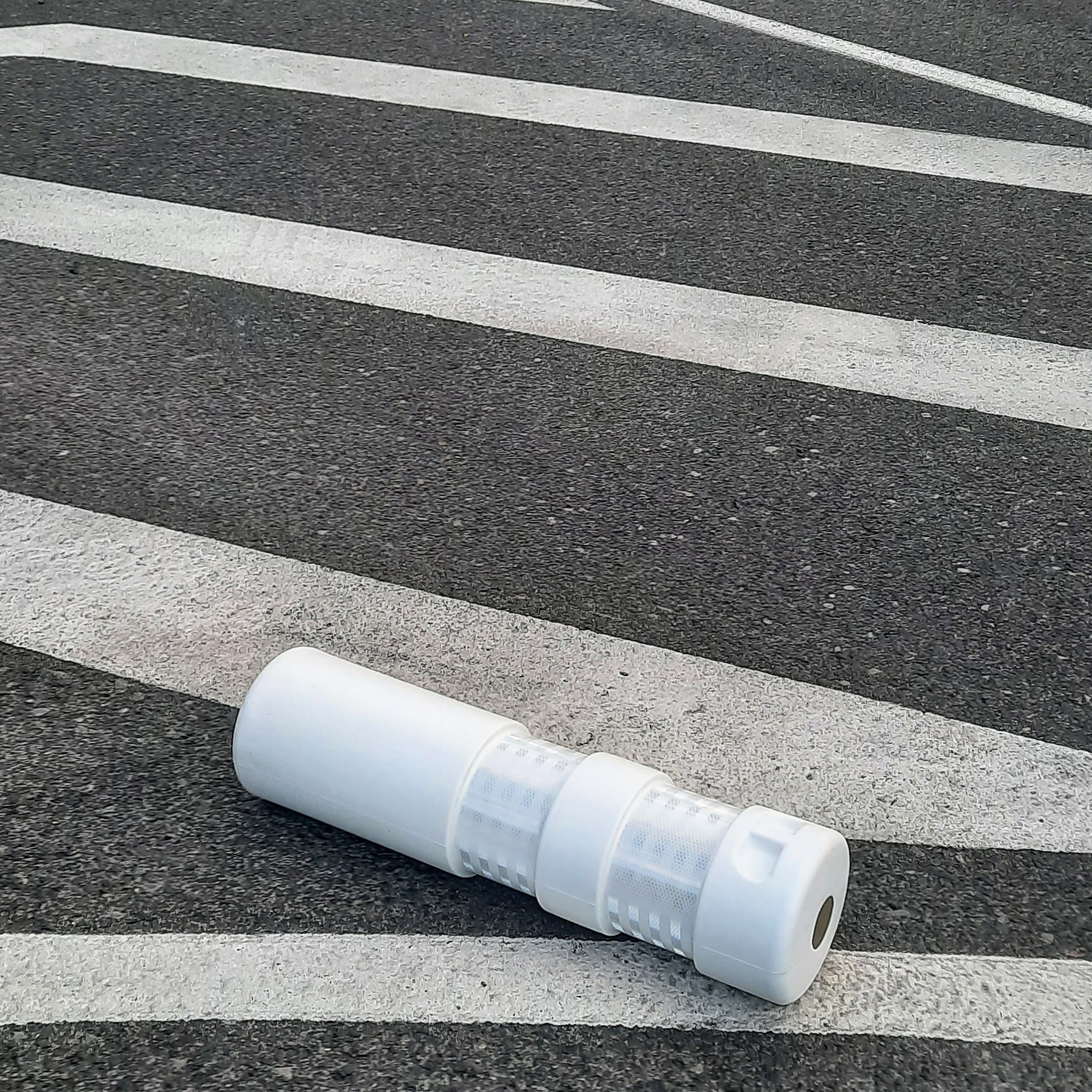 Baliza derribada junto al paso de peatones en el que mataron a mi hija. Fotografía realizada tres años después.Banal.