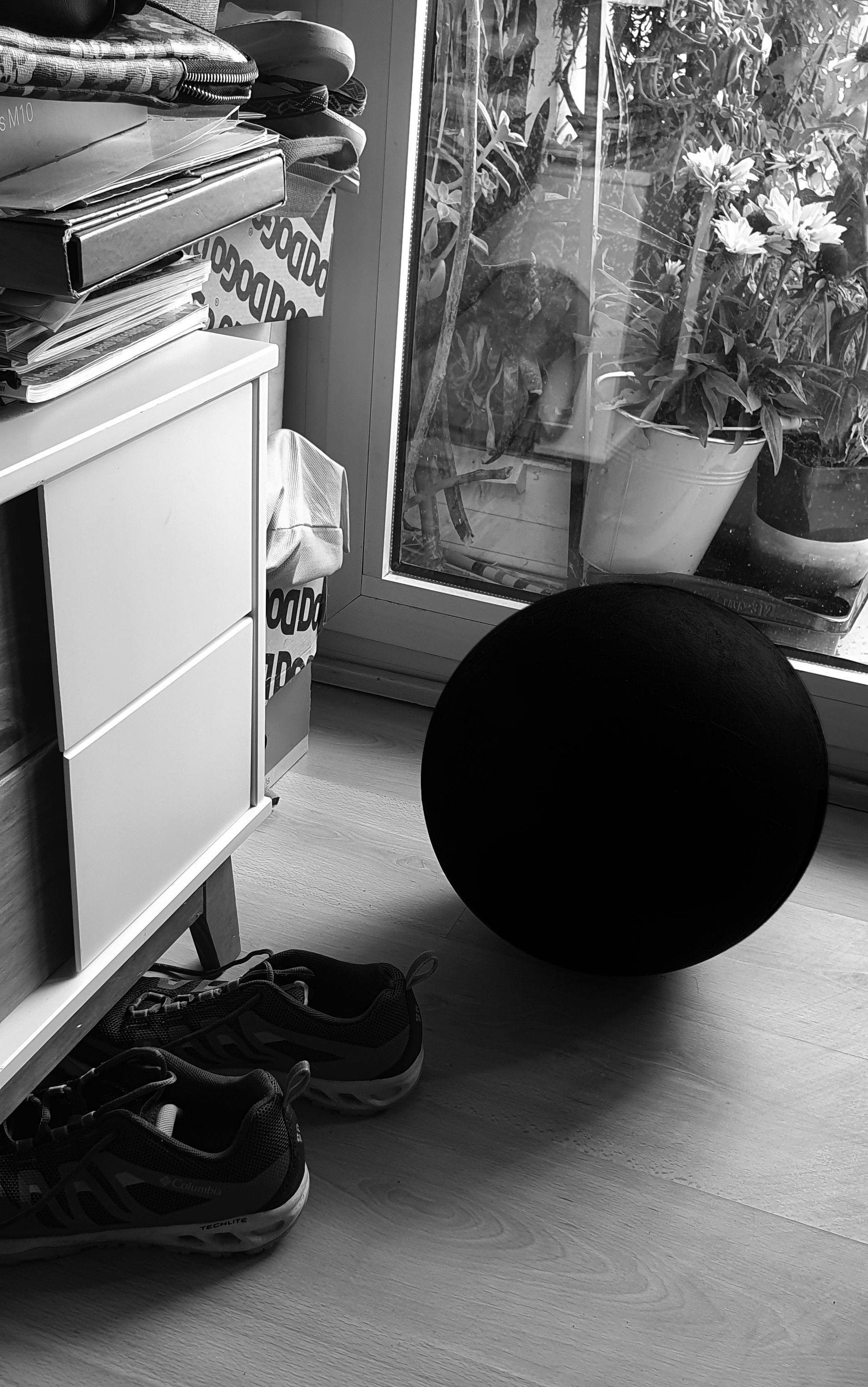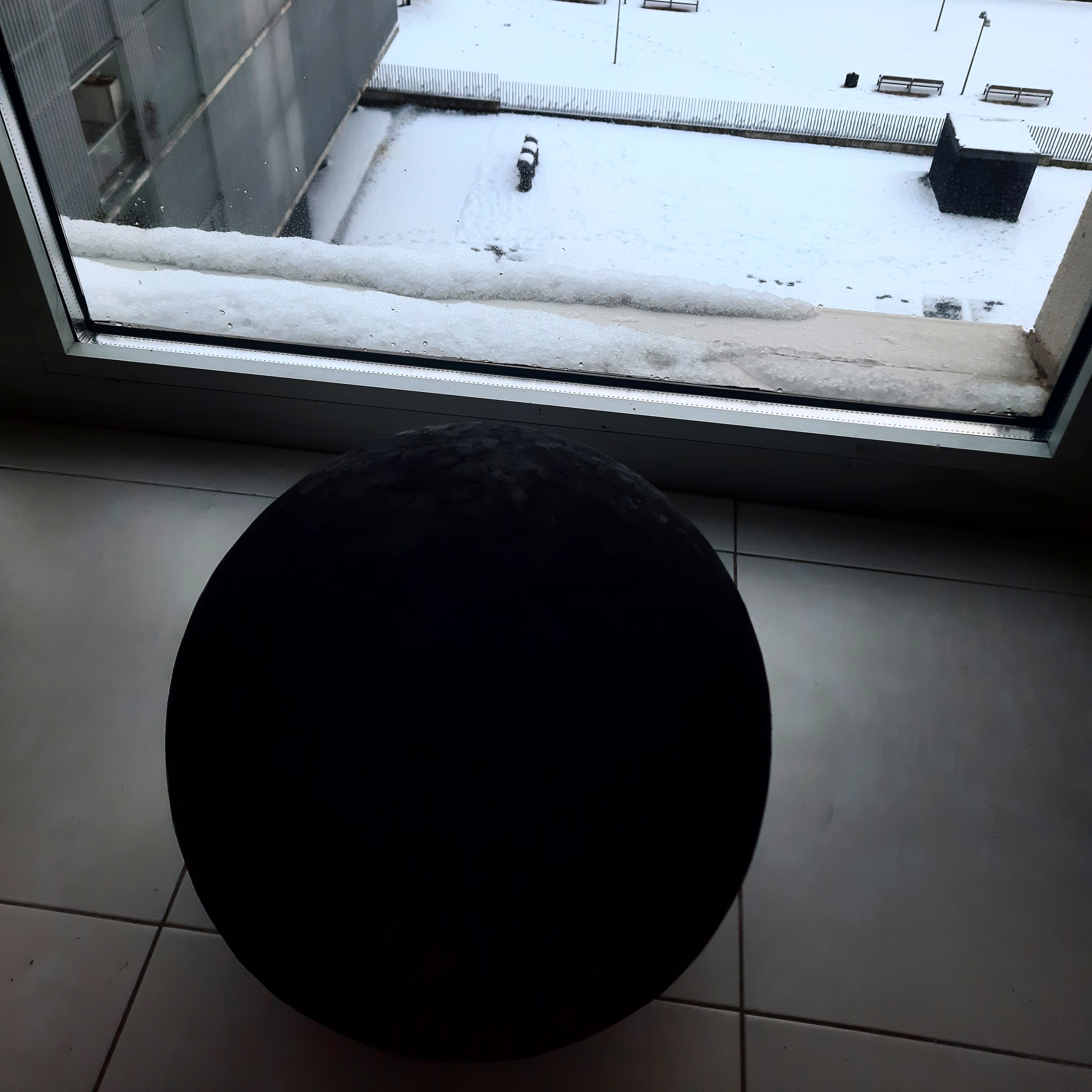 Uno de los primeros objetos de la serie. Estrechamente relacionado con las piezas “Concentración” y “My black void”. Se trata de una esfera de granito negro de 30 cm. de diámetro y 40 kilogramos de peso pintada a la encaústica con pigmento black de Stuart Semple. Cohabita con mi familia desde mayo de 2020.