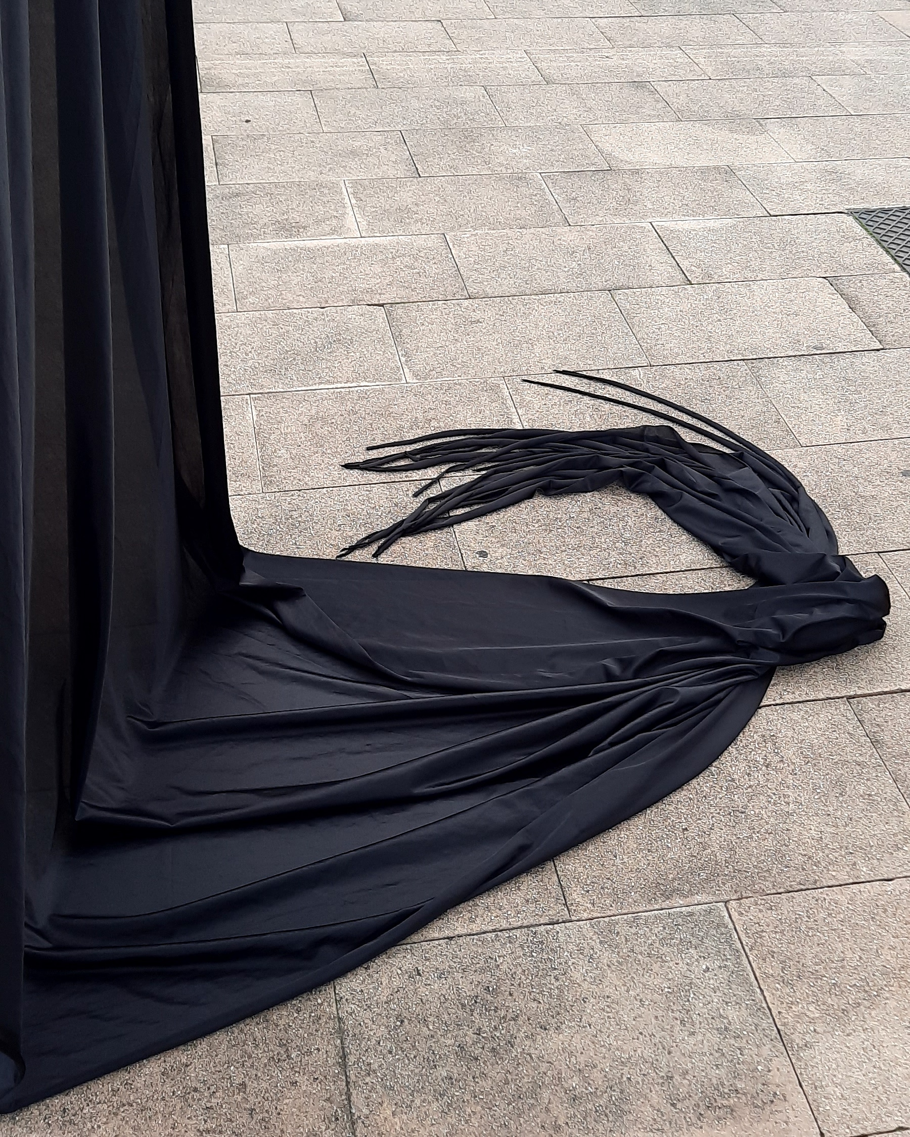 Acción de desplegar mi larga bandera negra de duelo frente a la ciudad o sus edificios municipales.