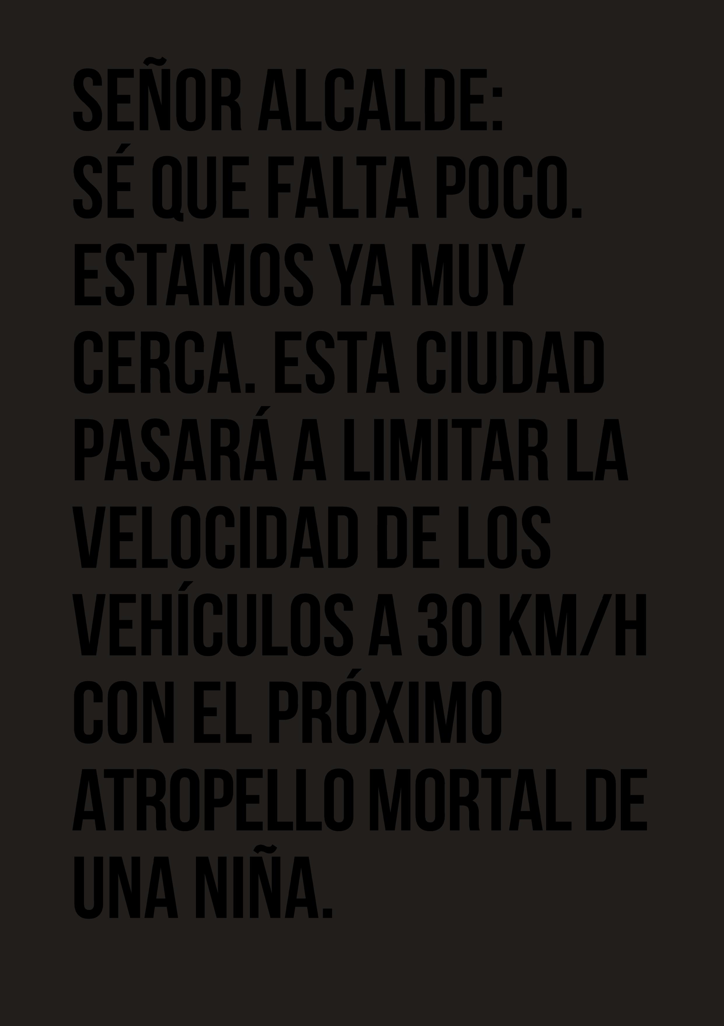 Imperativo moral: Conduce por la calle en la que mataron a mi hija como te gustaría que condujera yo por la calle que atraviesan tus hijos todos los días. Conduce por esta calle que atraviesa todos los días mi hijo, el hijo que me queda, como te gustaría que condujera yo por la calle que atraviesa todos los días tu hija.